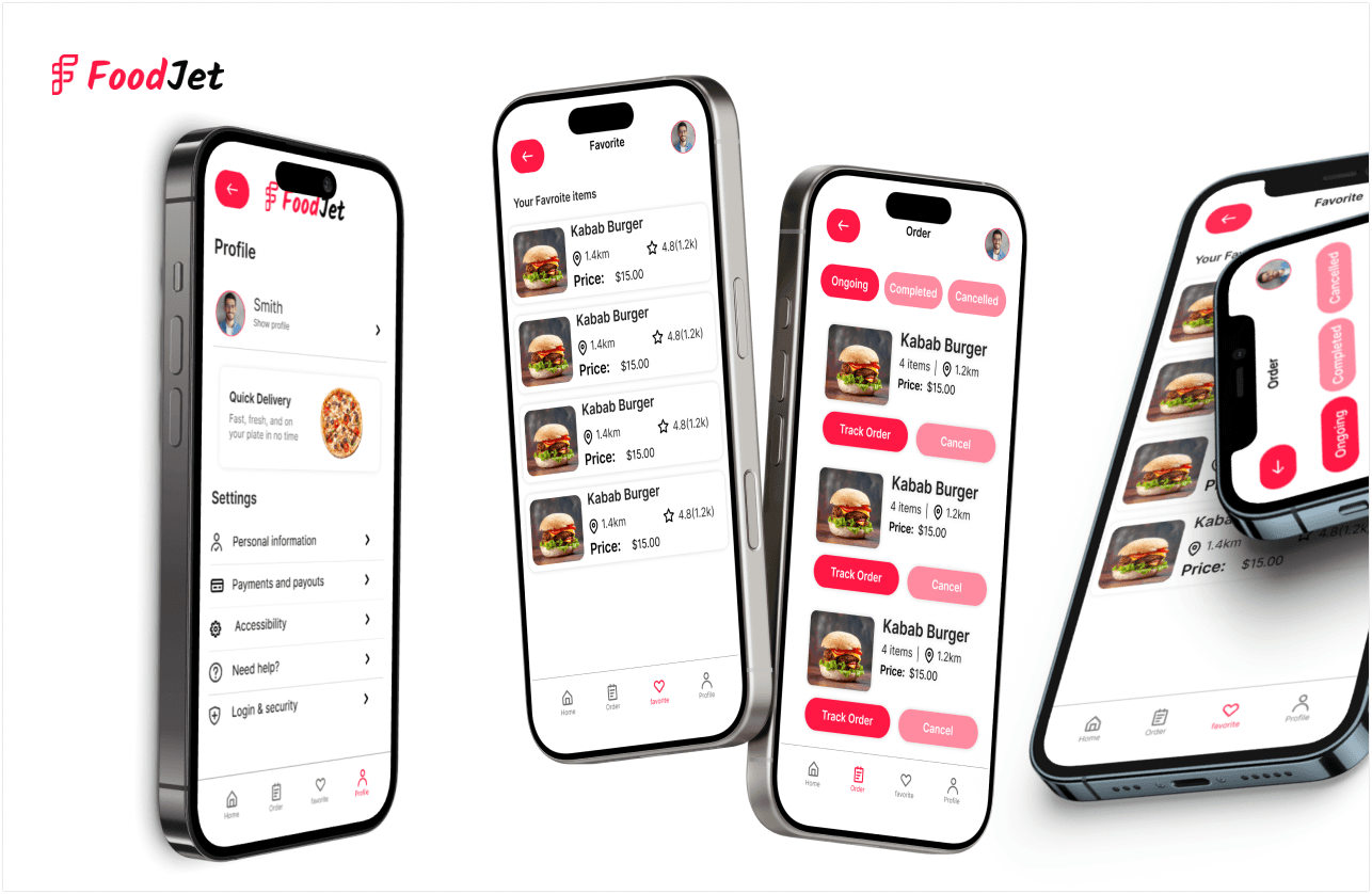 The primary goal of FoodJet is to provide users with a delightfully simple and fast ordering experience, combining smart navigation, visual appeal, and real-time delivery tracking. Crafted for convenience-loving consumers and fast-paced lifestyles, FoodJet makes it easy to browse, select, and receive your favorite drinks in just a few taps.
